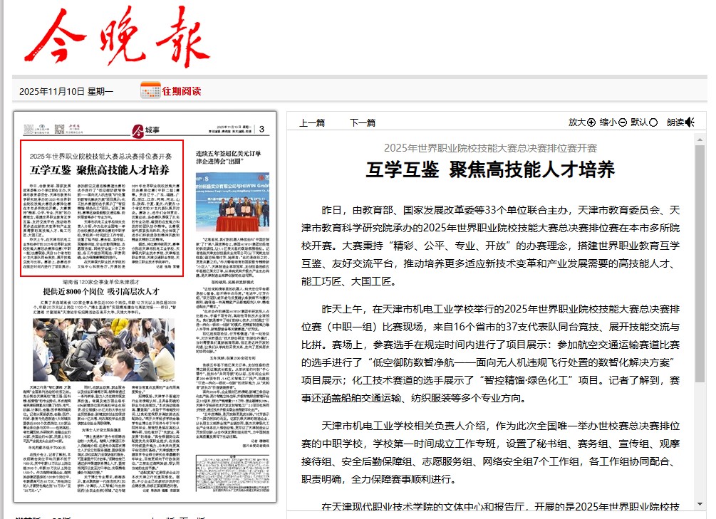 ——2025年世界职业院校技能大赛总决赛排位赛在津举行11月9日至10日,2025…