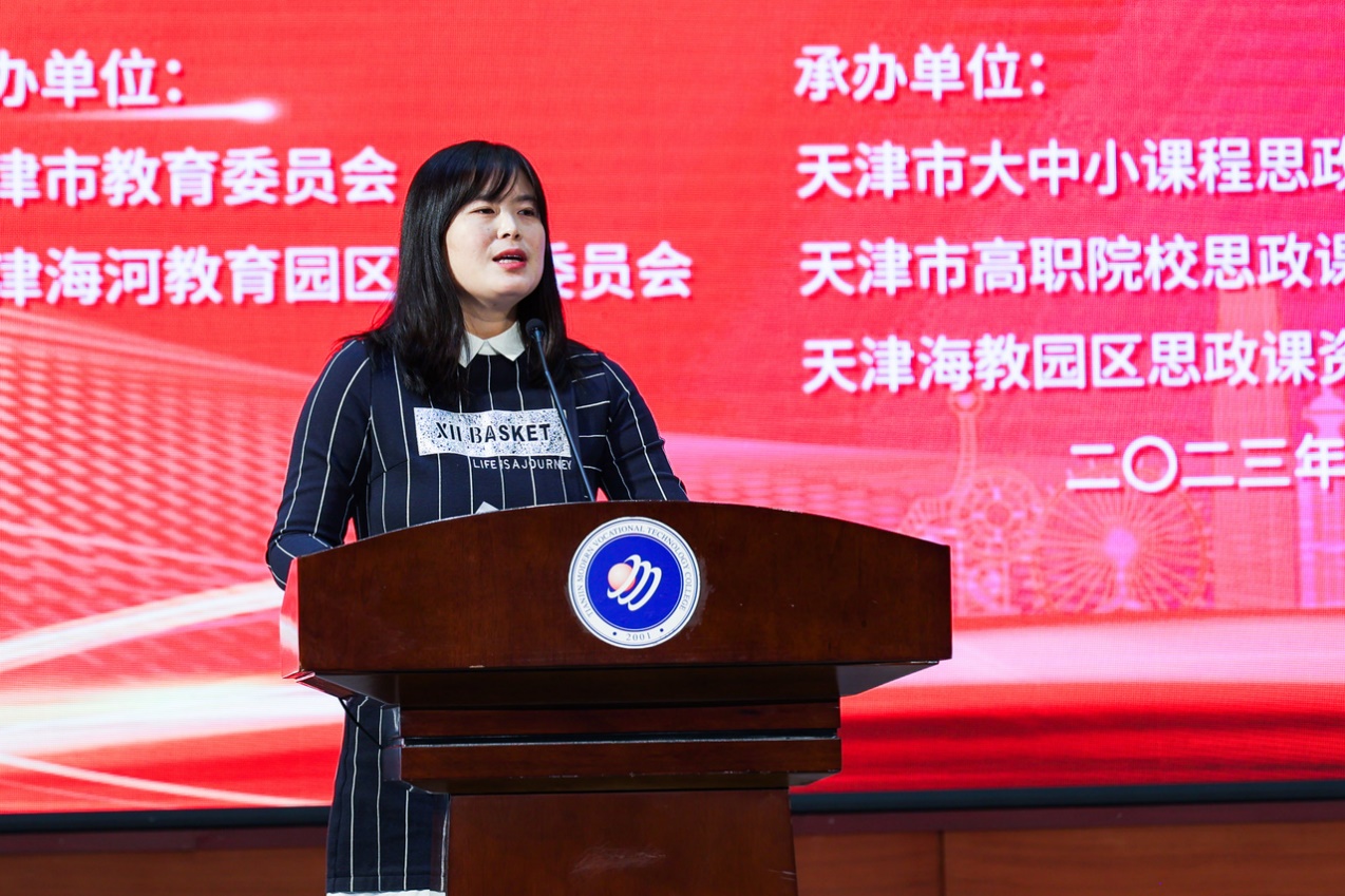 比赛最后,天津市大中小学思政课一体化教学研究联盟秘书长、天津科技大学马克思主义学院院长朱新华教授对本次大赛进行了点评。她指出,本次大赛作品质量高、内容好,课程思政组作品内容涵盖了科学技术、数学等课程,参赛教师能结合不同课程特点,深入挖掘课程思政元素,有机融入教学,达到润物无声的育人效果。思政课程组作品紧紧围绕社会主义核心价值观等内容,通过故事化等教学方式,展示了新时代中职学校思政课教师的风采。