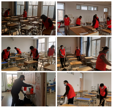 党员教师在现代学院副院长孙勇民和生物工程学院党政领导的带领下,拿着扫把、抹布、水桶等工具对教室和实训室进行卫生大扫除,老师们分工明确,认真细致地检查多媒体教学设备、电表电源、门窗、整理桌椅、打扫卫生,大家热情似火,干劲十足,乐在其中。