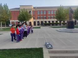 (南开学校小学生在智能工程学院学子指导下进行无人机室外操作)