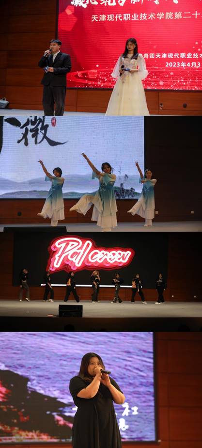 开幕式在师生精心准备的科技文体节宣传视频中拉开帷幕,视频中全景展示了金年会科技文体节21年来丰富多彩的第二课堂活动情况以及开拓创新、砥砺奋进的发展历程,立体呈现出在思想教育、学术科技、社会实践和文体素质等方面的文化育人成效。智能工程学院团总支书记刘琛以科技文体节期间的特色活动项目“新时代京津冀实践行”为例做了经验分享,号召广大学生要通过科技文体节的活动平台,立足专业、增长才干,不断提升专业技术应用水平。管理工程学院金融专业的刘鸿丽同学围绕提升技术技能、培育文化素养等方面做了典型发言。开幕式现场,学院艺术团的同学们带来了精彩纷呈的文艺演出,她们用活力阳光的街舞表演展现出现代学子的青春热情;智能工程学院李富洋同学的男生独唱《向往》,用歌声表达出现代学子在中华民族伟大复兴的新征程上展现出的使命担当;还有同学们熟悉的校园乐队和校园歌手演唱《春风十里》、《这世界那么多人》等耳熟能详的青春励志歌曲,以及诗歌朗诵《精神的力量》和民族舞蹈《采薇》等文艺表演。用歌声唱响时代强音,用旋律奏响奋进乐章,用奋斗激扬青春姿态,在全面建设社会主义现代化国家新征程上唱响青春之歌。