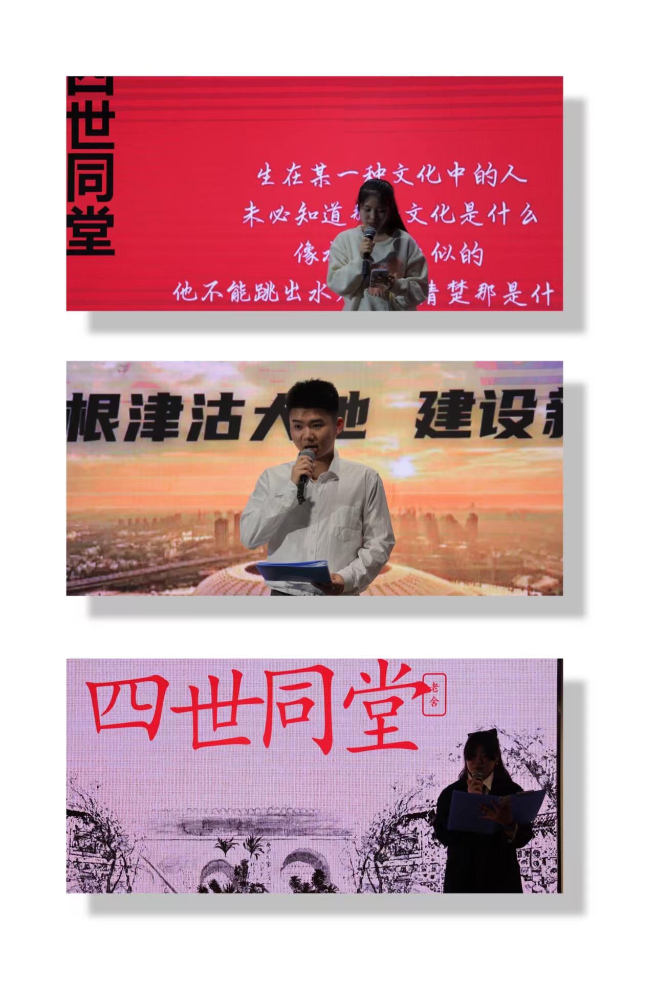 比赛现场,精彩纷呈,十三名选手紧扣活动主题,分享了自己阅读作品的心得体会。选手们把这次阅读比喻成一把打开天津城市文化的“钥匙”。特别是多数选手通过阅读冯骥才先生的《天津文化地图》,加深了对天津这座城市的了解,通过品读《天津文化地图》使选手们感受到这座城市的魅力,拉近了与天津的距离,并纷纷表示作为新时代青年要继承和发扬这座城市的信念与精神,锻炼自己,不负这片土地的美名。