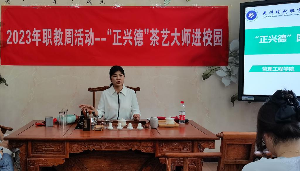 为深入学习贯彻习近平新时代中国特色社会主义思想和党的二十大精神,推动现代职业教育“一体两翼五重点”建设改革,管理工程学院于5月18日特邀北京正兴德茶庄直播间主播、国家一级茶艺师宫敬媛走进校园为学院旅游专业和市场营销专业学生讲解并传授了茶文化和数字营销的知识以及直播电商技能和茶艺技能。