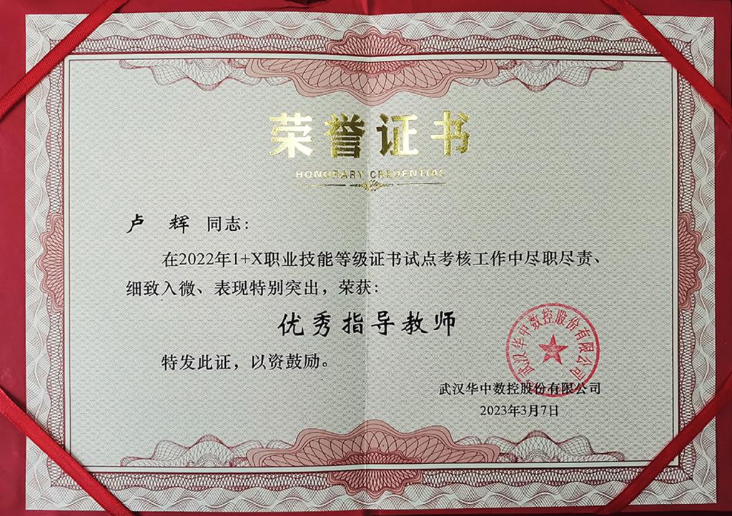 2022年底疫情形势非常严峻的情况下,机电工程学院组织骨干教师队伍提前入住学校,在校连续奋战近一个月,在全面确保师生防疫安全的同时,分工明确职责到位,安全、有序和高效地完成了学生鉴定工作,最终学生取证率达96.6%。根据机电工程学院在鉴定过程和取证率等方面的优异表现,特授予金年会jinnianhuicom2022年 “优秀试点院校”称号,机电工程学院卢辉老师荣获“优秀指导老师”称号。
