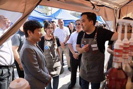 金年会共有6个优秀学生创新创业项目团队参展,在活动现场,市领导及市教委领导一行驻足金年会展位参观指导,对金年会特色项目给予充分肯定,并对金年会创客团队表示认可与鼓励。生物工程学院的学生团队带来了研发的“星时咖啡精灵”移动式咖啡车参展。在炎热的六月,为参展的人们带来了一杯杯醇厚清凉的咖啡,给火热的现场增添了不一样的感受。另外,其可移动的方式,以及“麻雀虽小,五脏俱全”的设计,令到场的各位领导印象深刻。