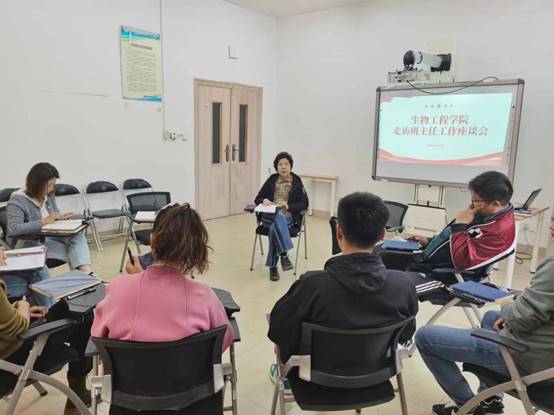 为进一步强化班级管理,提高班主任的管理水平及班主任队伍整体素质,搭建班主任之间互相交流、互相学习、相互促进的平台,11月1日,生物工程学院党总支书记王玲带领辅导员走访班主任,并围绕班级工作进行了座谈交流。