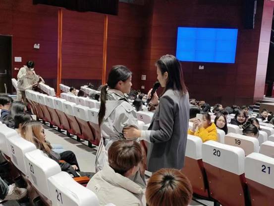 在培训过程中,张洁老师使用理论讲解和角色扮演的方式手把手地指导在场的心理委员利用倾听技术和共情技术进行危机干预演练,老师与同学们互动和答疑,在轻松愉悦的氛围当中强化了大家对于自身工作重要性的理解,也进一步明确了作为一名心理委员的角色定位和工作职责。
