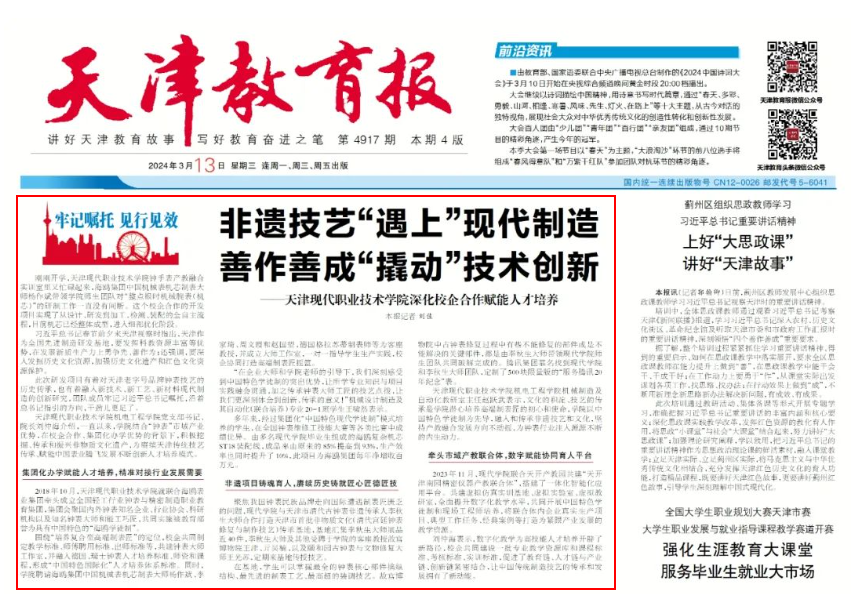2023年11月,现代学院联合天开产教园共建“天开津南园精密仪器产教联合体”,搭建了一体化智能化应用平台。共建虚拟仿真实训基地、虚拟实验室、虚拟教研室,全面提升数字化教学水平,共同开展中国特色学徒制和现场工程师培养,将联合体内企业真实生产项目、典型工作任务、经典案例等打造为紧跟产业发展的教学资源。