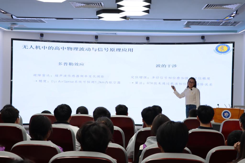 “高中物理中的无人机科学有哪些?牛顿第三定律、多普勒效应、波的干涉等等,这些物理知识体现在无人机的方方面面......”物理课教师通过科学原理,讲述了无人机的设计与开发涉及哪些专业学科等问题,激发了他们的专业兴趣。