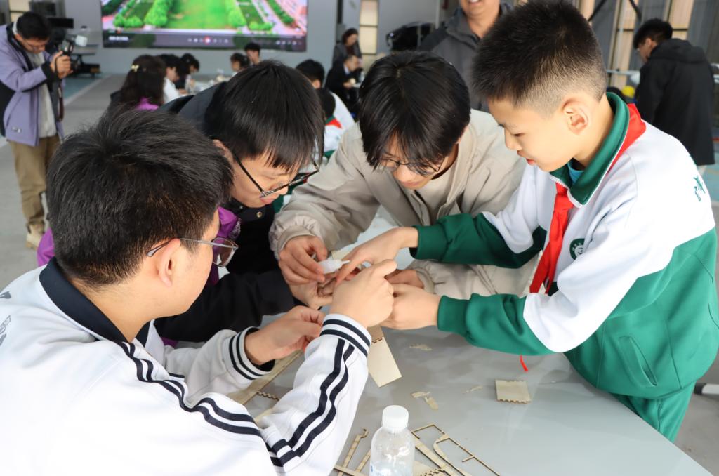 “你负责图纸切割、他粘合木制手抛飞机,我根据图纸计算机身、机翼比例画图......”在无人机体验课上,大中小学生相互配合一起制作了属于他们自己的“无人机”。