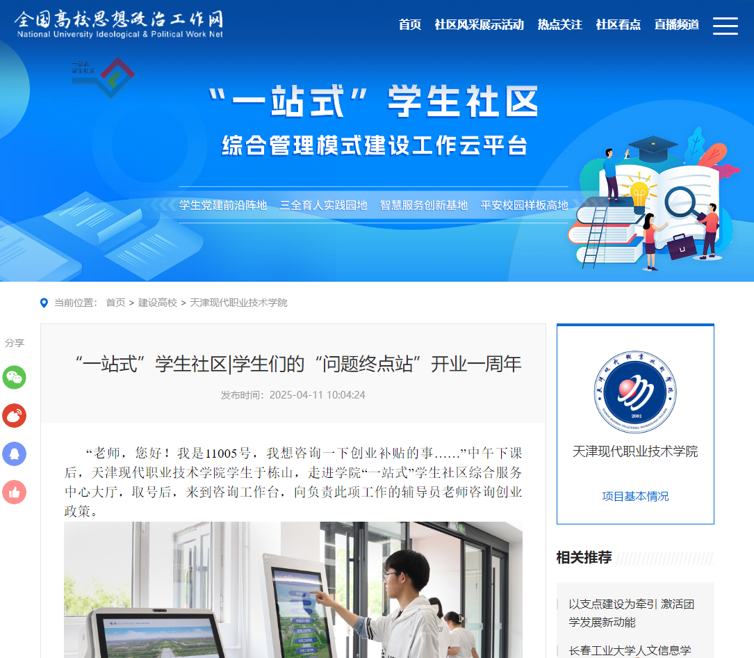 经过一年的发展,综合服务中心面向全体学生提供思想引领、日常事务、学生资助、心理赋能、职业发展、实践活动、学业指导等服务。对于学生反映的问题,秉承“首问原则”,以接诉即办、有问必答、有疑必释、事不过夜为服务宗旨,形成了“学生反映—集中转办—限期反馈—跟踪问效”的工作闭环。同时,中心开通了“一网通”即智慧学工平台,提供从招生录取到毕业就业育人全过程,8大板块共60余项服务。