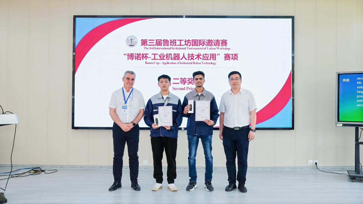 课堂之上,技术精进的阶梯更为陡峭。自动化生产线、机器人设备、计算机操作……课程难度远超乌马尔在巴基斯坦所学。他迎难而上,将汗水融入实训室的每一个日夜,这份执着在第三届鲁班工坊国际邀请赛的竞技场上璀璨绽放。面对强手如林,乌马尔与中国队友并肩作战,一路过关斩将,最终勇夺大赛第二名。“那一刻的激动和开心太难忘了!”这份荣誉,是对他跨越山海追寻技术梦想的最佳回响。