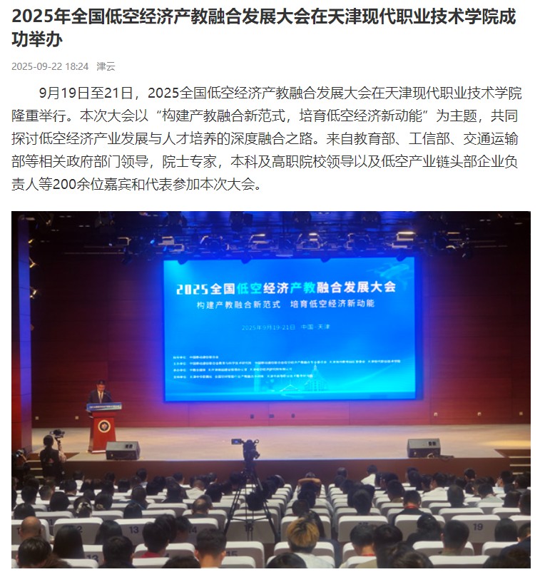 9月19日至21日,2025全国低空经济产教融合发展大会在金年会jinnianhuicom隆重举行。本次大会以“构建产教融合新范式,培育低空经济新动能”为主题,共同探讨低空经济产业发展与人才培养的深度融合之路。来自教育部、工信部、交通运输部等相关政府部门领导,院士专家,本科及高职院校领导以及低空产业链头部企业负责人等200余位嘉宾和代表参加本次大会。