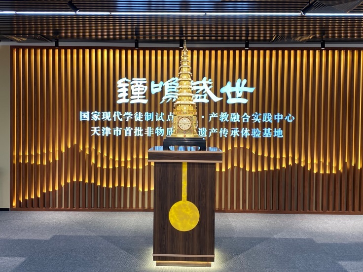 “清代宫廷钟表修复与制作技艺传承体验基地”发挥现代学院特色钟手表专业资源优势,成立天津市“清代宫廷钟表修复与制作技艺”非物质文化遗产传承人李秋生大师工作室,秉持文化自信理念,传承发扬文化智慧,凝聚钟手表产教融合实践中心、大师工作室、机芯研发中心和现代学徒制示范中心等功能,全新打造、全新定义、全新培育,构建五“誉”模式,通过“数字+非遗”为技艺传承、文化传承、创新传承搭建新载体。